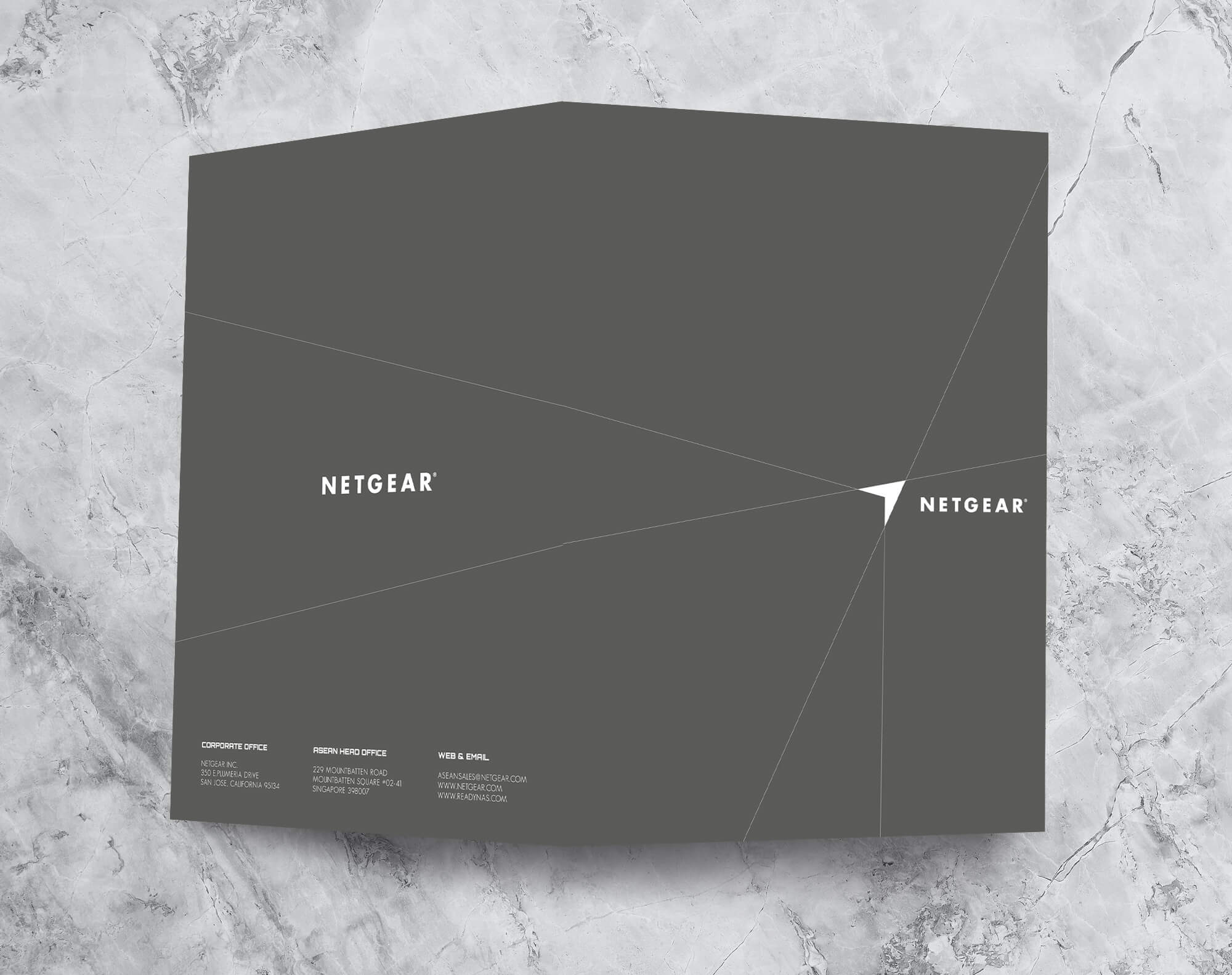 Netgear folder designed by SurfLoft. The folder was created to insert Netgear various product catalog.